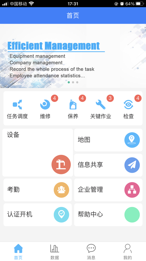 该平台通过丰富而专业的功能模块为租赁商、主机厂、施工方及监管部门提供设备、人员和资产等相关管理服务。