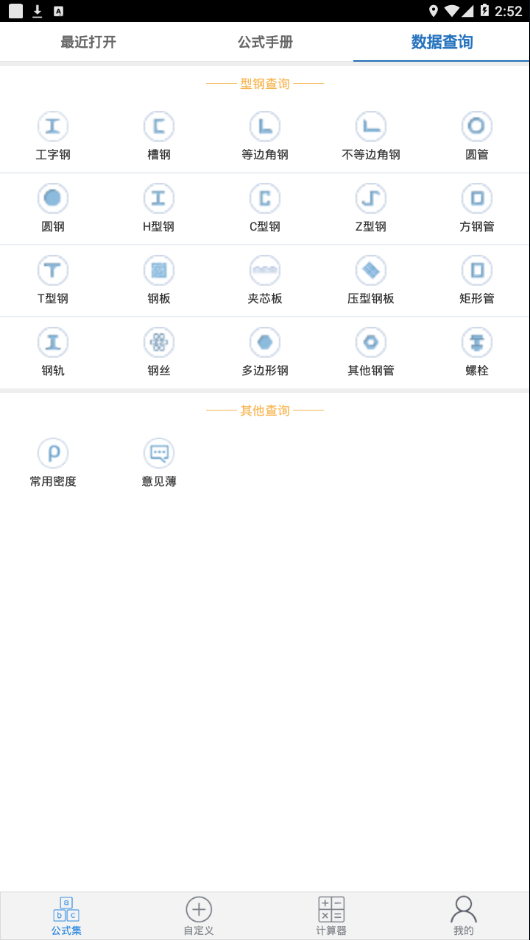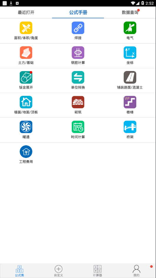 广联公式集app是专为建筑工程师和施工人员打造的专业计算工具。这款软件集成了丰富的计算功能,包含公式手册、数据查询等实用服务,为建工行业用户提供高效便捷的计算解决方案。