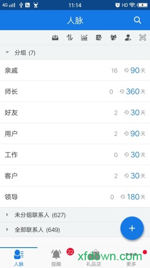 人脉分组、级别划分、周期提醒、云端备份,宝贵人脉及时维系