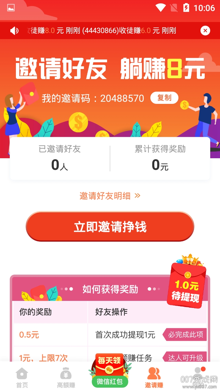 抖米宝接单福利版是一款专为手机用户打造的赚钱应用,平台汇集海量任务资源,用户可根据自身情况自由选择接单。完成任务后收益即时到账,操作简单快捷。任务类型丰富多样,既能通过游戏赢取赏金,还能通过推广邀请获得现金红包。新用户注册即可领取专属新人礼包。