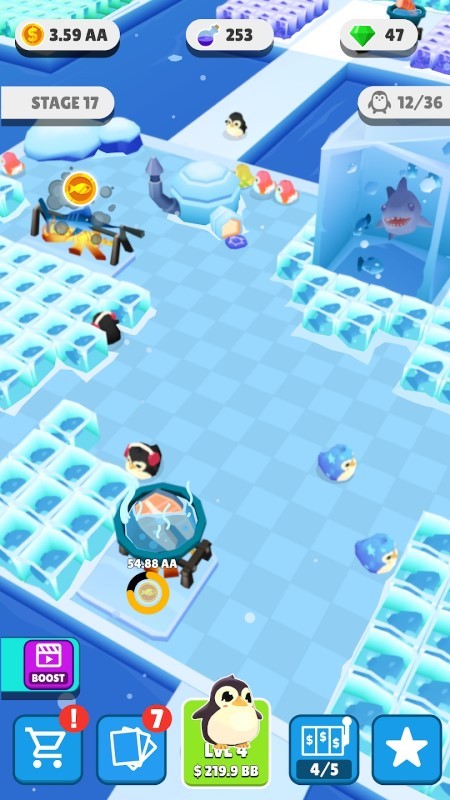 空闲企鹅岛是一款风格的休闲手游,玩家需要孵化企鹅,让企鹅开凿冰块,获取大量的金钱,不断的升级孵化企鹅,获得更多的金币!