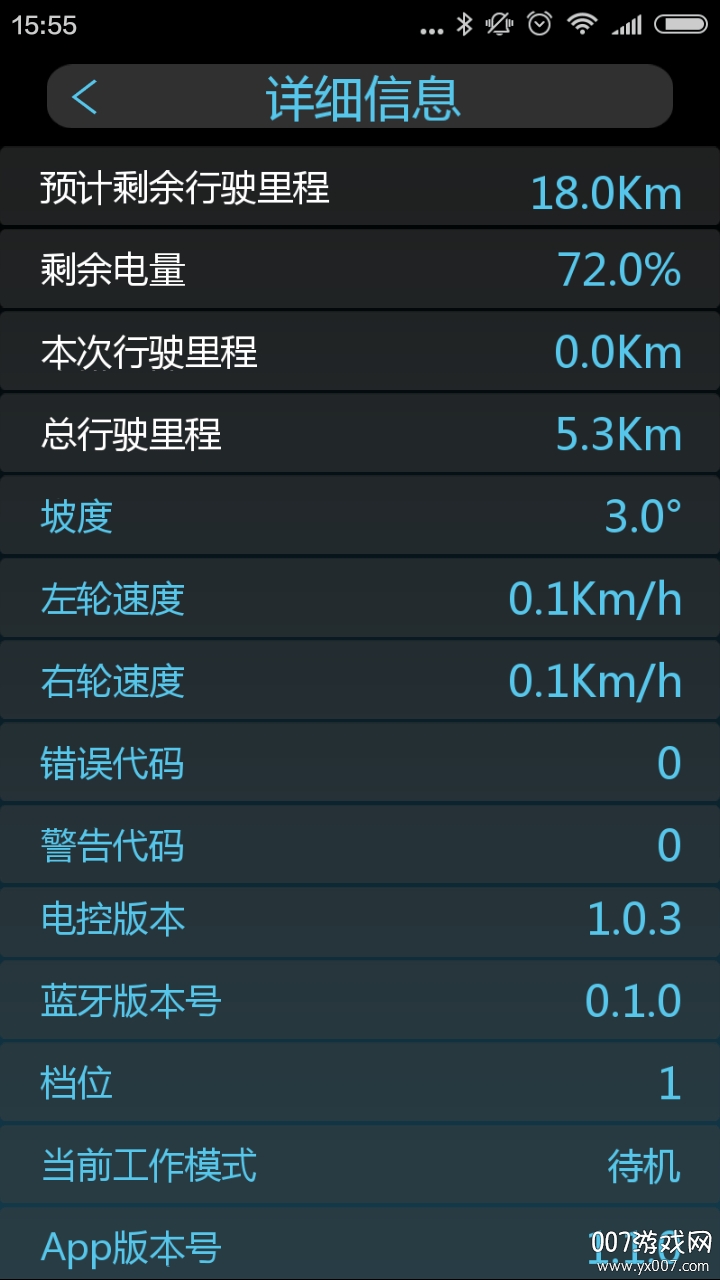 如左右轮速度、坡度、电量、剩余里程等。