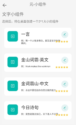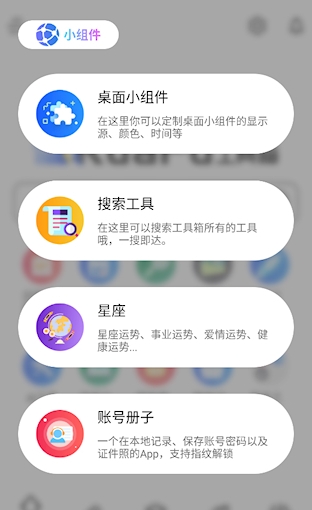 打开应用后点击底部中央功能键,选择"桌面小组件"选项。从提供的组件样式中挑选适合的模板,点击确认即可在手机桌面创建个性化小组件,方便随时调用常用功能。