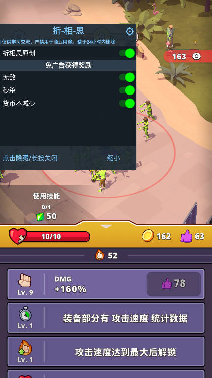 自动:游戏开始后,玩家的会自动消灭靠近的僵尸。玩家需要合理分配获得的赞,用于升级装备和开启新一轮的。