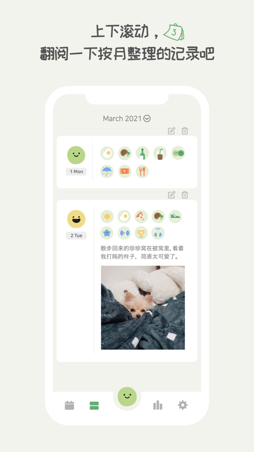 通过情感豆和活动图标轻松记录每日生活