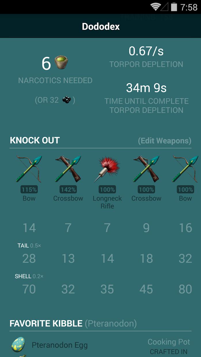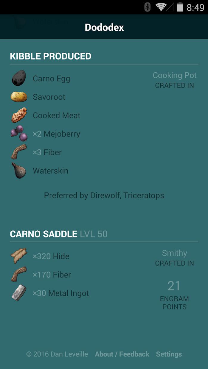Dododex为方舟:生存中的每种生物提供一个综合全面以及经常保持更新的指南手册,其中包含驯服计算器、饲料和鞍的配方、生物属性、计时器、每种武器的击晕效果信息、以及独创的提示和从成千上万的ARK玩家中收集到的大数据信息。