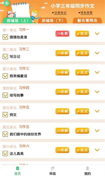 支持按年级检索写作内容,满足不同学习需求。
