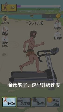 在升级界面可使用金币提升各项能力,包括速度、耐力、耐力恢复和冲刺概率等属性。