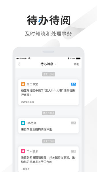 实现工作审批流程电子化,提升办公效率;建立家长、学生、教师三方沟通桥梁;支持教师开展移动端教学活动,进行数字化班级管理。