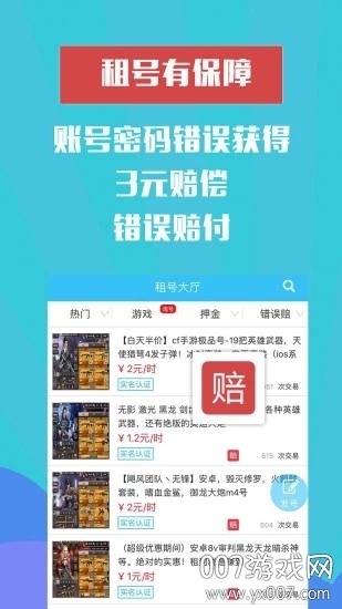 谷app0元免费租号版是一款专为游戏玩家打造的账号租赁平台应用,提供各类热门手游和端游账号的租赁及代练服务。用户可轻松租用心仪的高端游戏账号,享受畅快游戏体验,平台还定期推出丰富活动,让玩家以更低成本体验顶级账号。