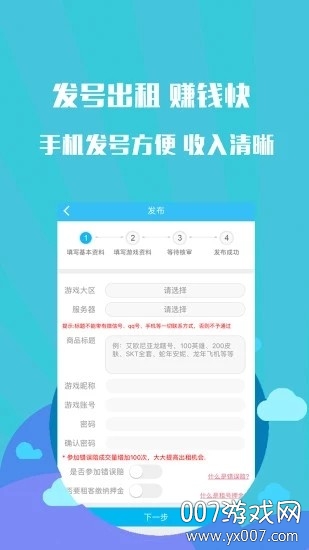 上号器保证租赁双方安全便捷交易,号主出租,租客租号体验。