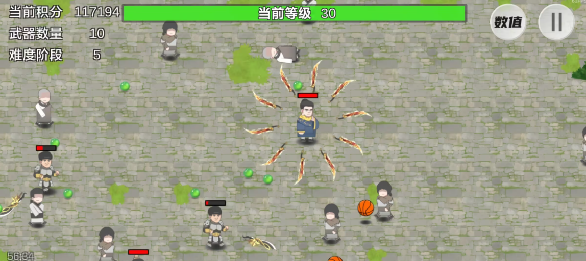 丰富多样的随机buff系统:移动速度、吸血效果、旋转速度、武器重生速度、武器尺寸、伤害加成、护盾效果、残血爆发等应有尽有。