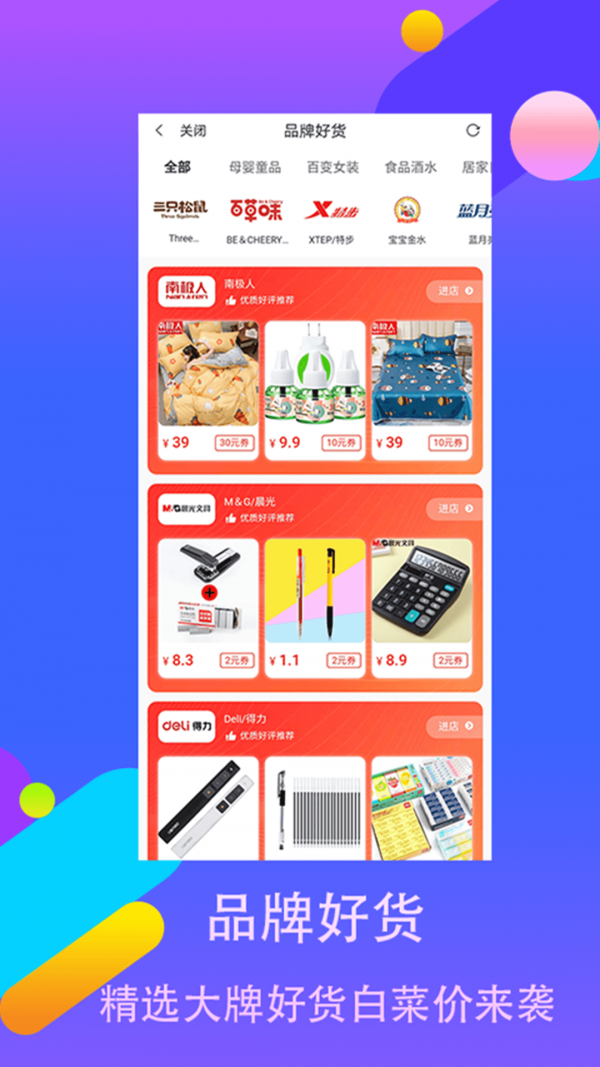 平台提供一站式购物体验,商品种类应有尽有。每日精选百万优质商品,优惠幅度最高可达80%,让用户享受专享折扣,领券到手软。