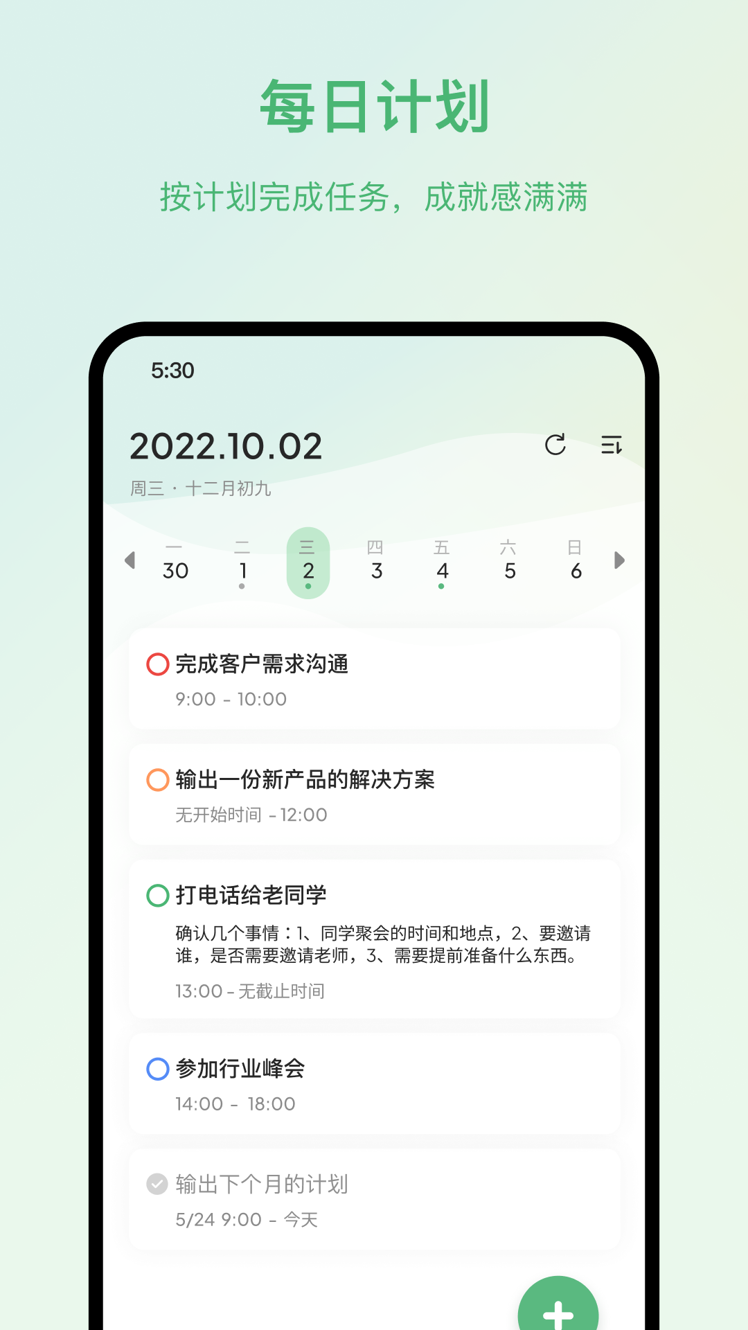 提供任务清单和日历两种视图,方便用户不同需求下的使用。