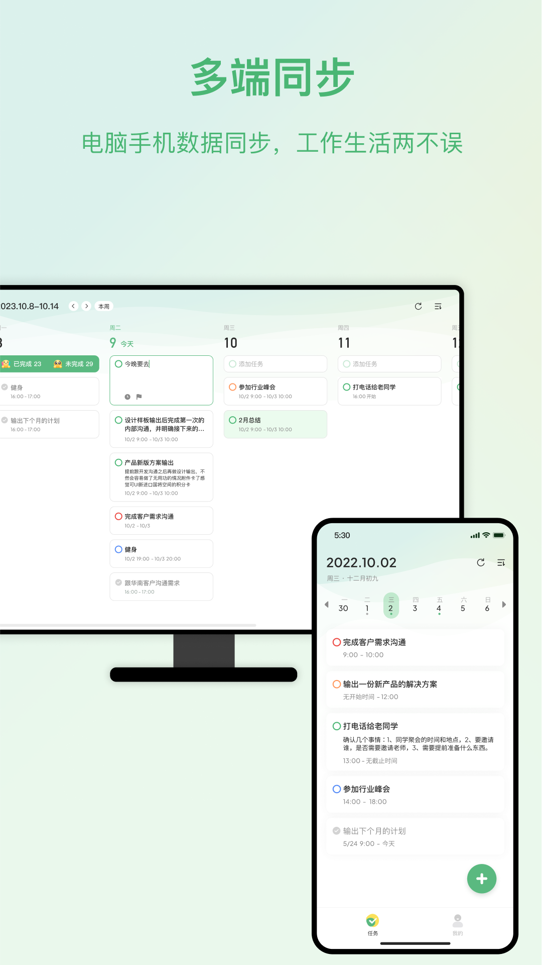 云同步,无论是电脑还是手机,都能即时同步最新任务信息。