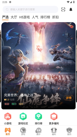 启动APP在【首页】立即可以看到热门游戏速递。
