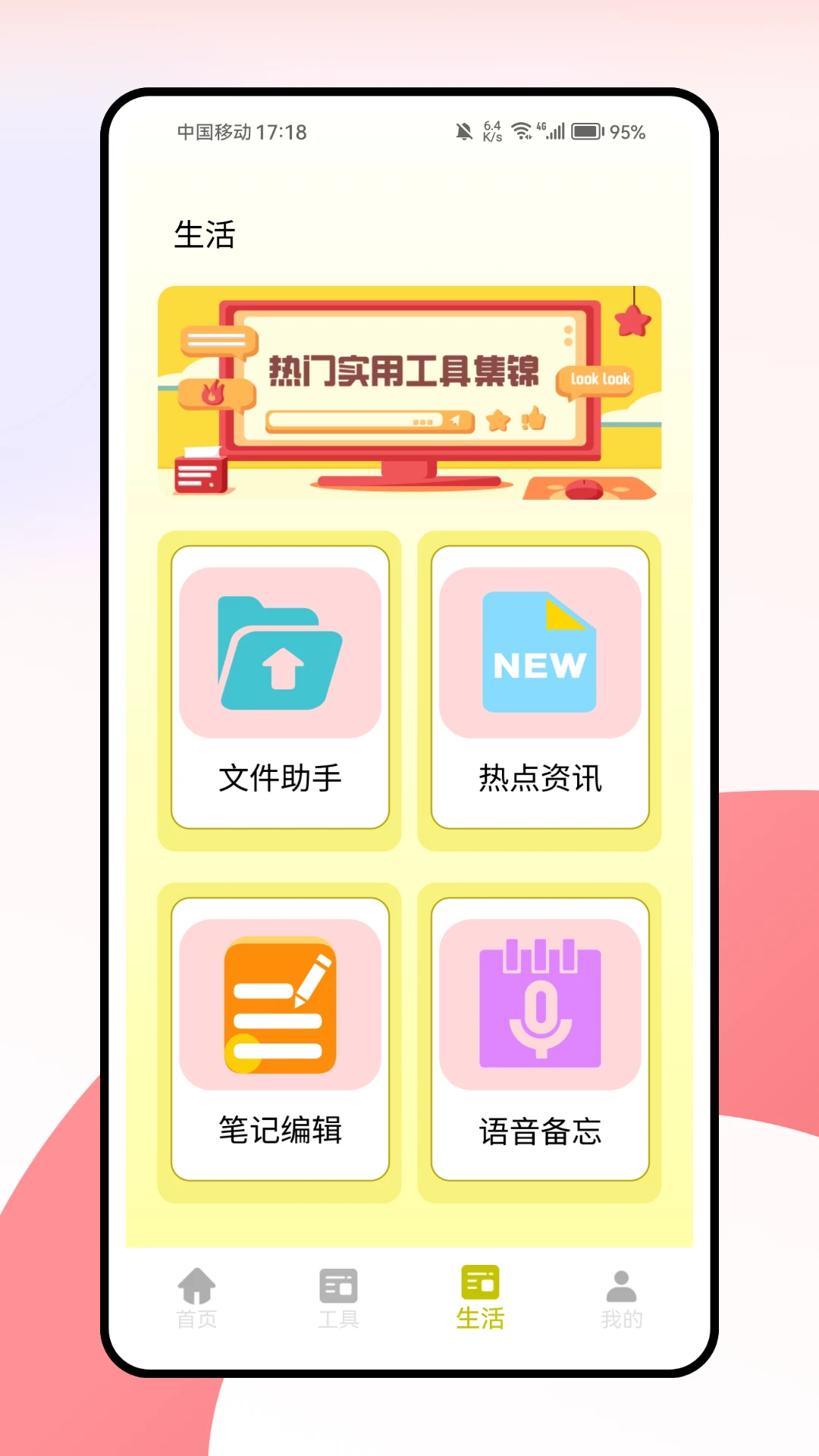 一款贴心的计划小助手,其首页功能丰富多样,设有纸条便签、心情解忧、每日随笔以及打卡助手等实用板块,满足您日常记录与规划的需求。工具栏中,计划清单助您条理清晰,主题素材为创意添彩,更有心理调适方法,助您舒缓压力、保持良好心态。生活栏则提供了文件助手、笔记编辑以及备忘录等便捷工具,让您的生活更加井然有序。