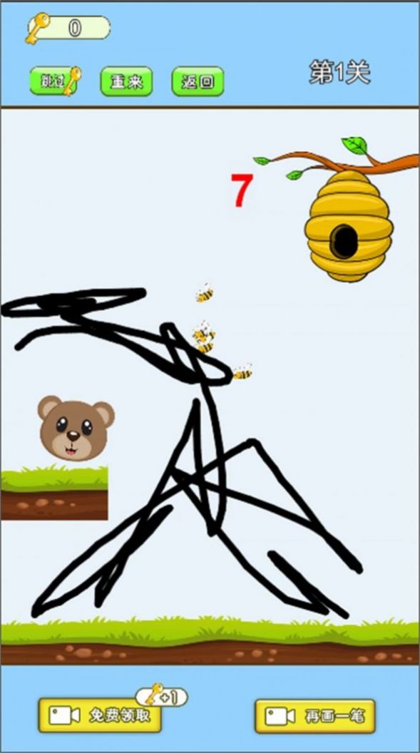 抖音小熊的蜂蜜游戏是一款创意十足的划线闯关游戏。游戏中,玩家需要运用智慧绘制线条,帮助可爱的小熊躲避蜜蜂的追击。看似简单的划线操作,实则暗藏玄机,每一笔都需要精心设计才能成功保护小熊。