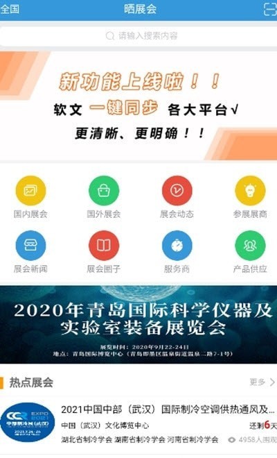 晒展会app是一款服务展会行业招商的平台,主要有国内展会国外展会,展会动态,展会分享等功能。若如您在找展会,那么欢迎使用晒展会app。