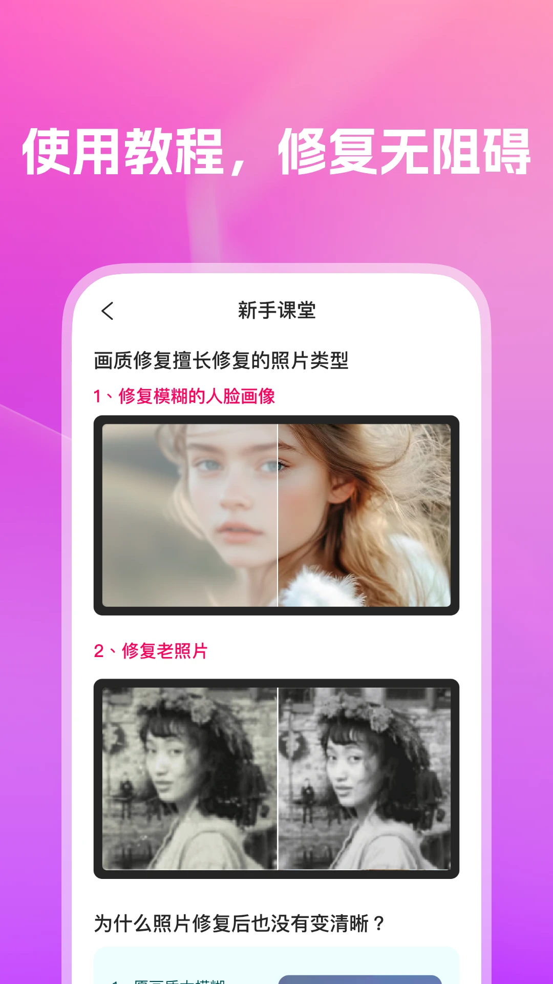 老照片修复功能,可自动去除划痕、补全缺失部分