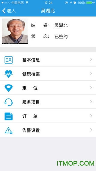 支持老人定位信息查询,手表告警信息提示,申请订单上面服务。