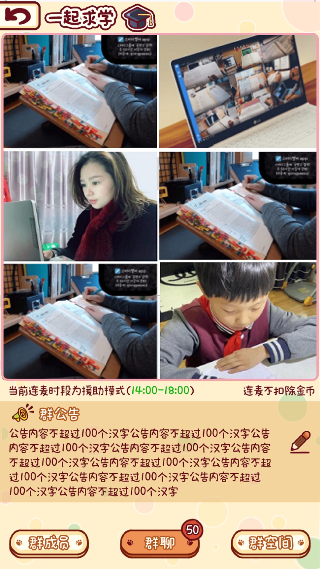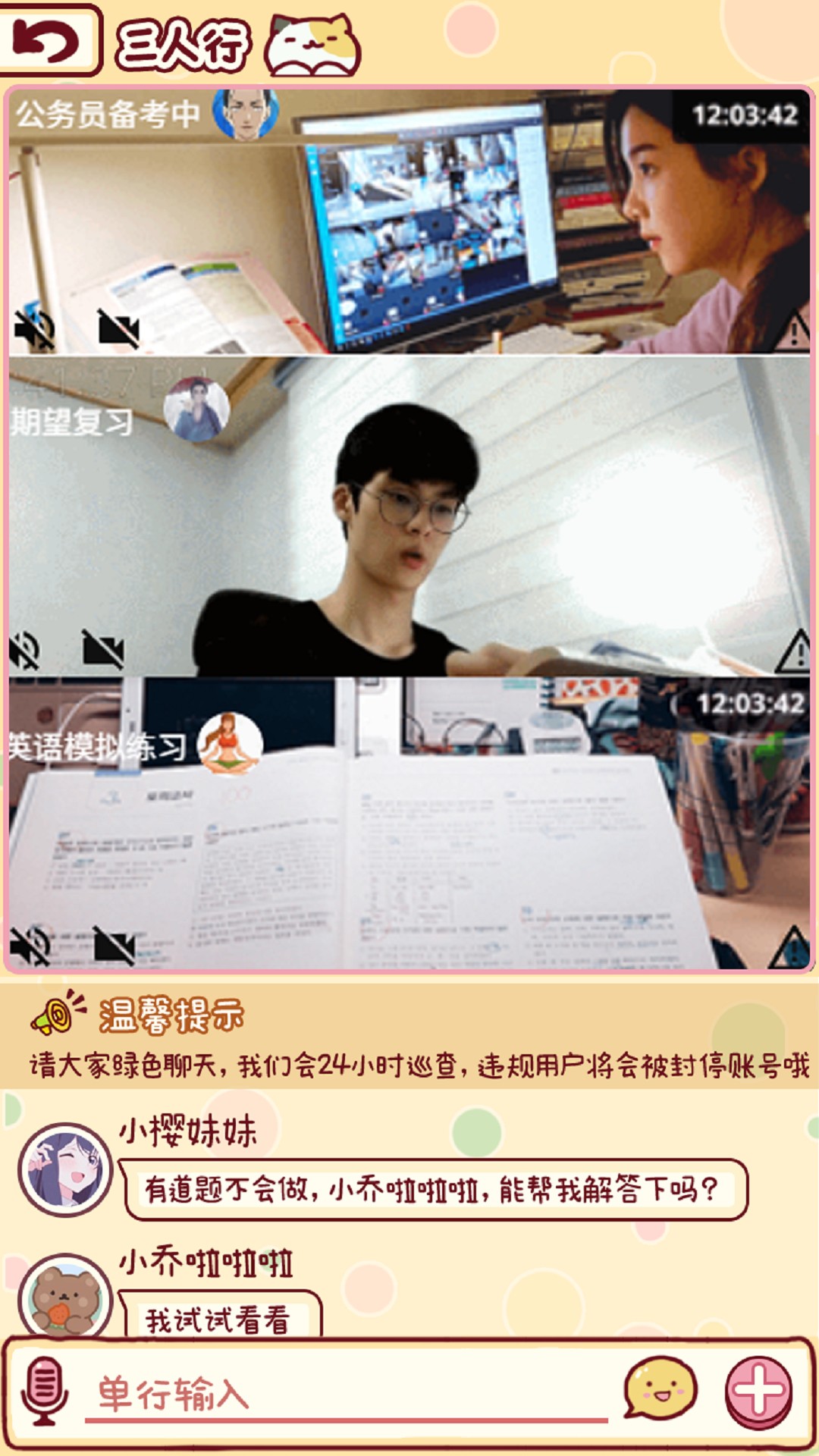 基于"三人行必有我师"理念设计的语音学习功能,三人小组通过语音互相督促、鼓励,在共同进步中培养自律品质;