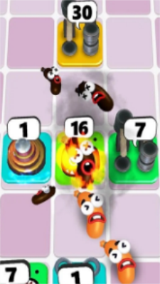 香肠碰撞是一款休闲类游戏,玩家需要控制香肠闯过一道道关卡。前进道路上布满陷阱,部分陷阱上标注着数字,玩家必须谨慎应对,只能让对应数量的香肠通过。若再次经过这些陷阱,将会引发爆炸,甚至可能导致所有香肠全军覆没。