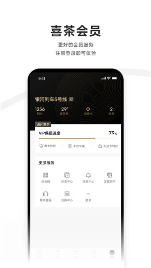用户可以使用本软件注册成为喜茶会员,享受各种优惠购物活动和最新茶品。