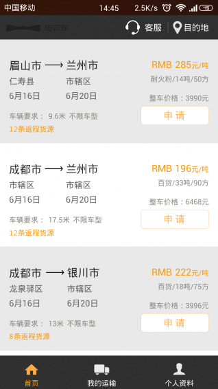 作为物流行业的智能助手,货管家实现了司机与货主的精准匹配。货主可以快速发布运输需求,司机能够及时获取优质货源。平台提供全程货物跟踪功能,订单管理清晰便捷,让物流运输变得更简单高效。