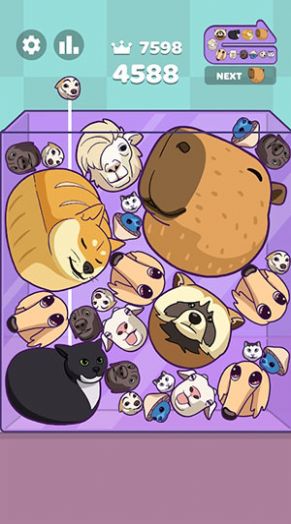 游戏操作简单直观,只需轻点屏幕就能将同色水豚合并。需要注意的是,不同颜色的水豚相遇会阻碍合成。每次成功合并都能获得金币奖励,这些金币可以用来解锁更强大的水豚,帮助玩家获得更高的分数和更丰富的奖励。