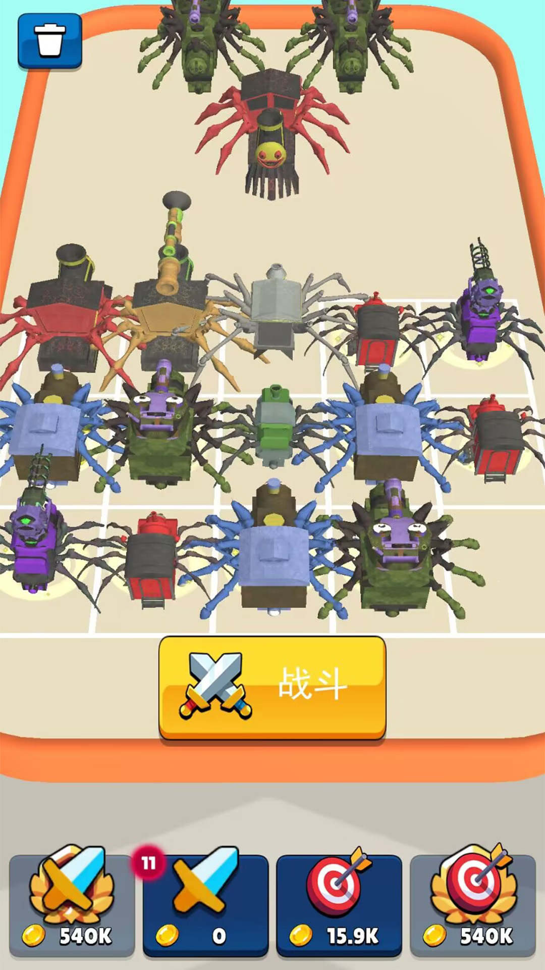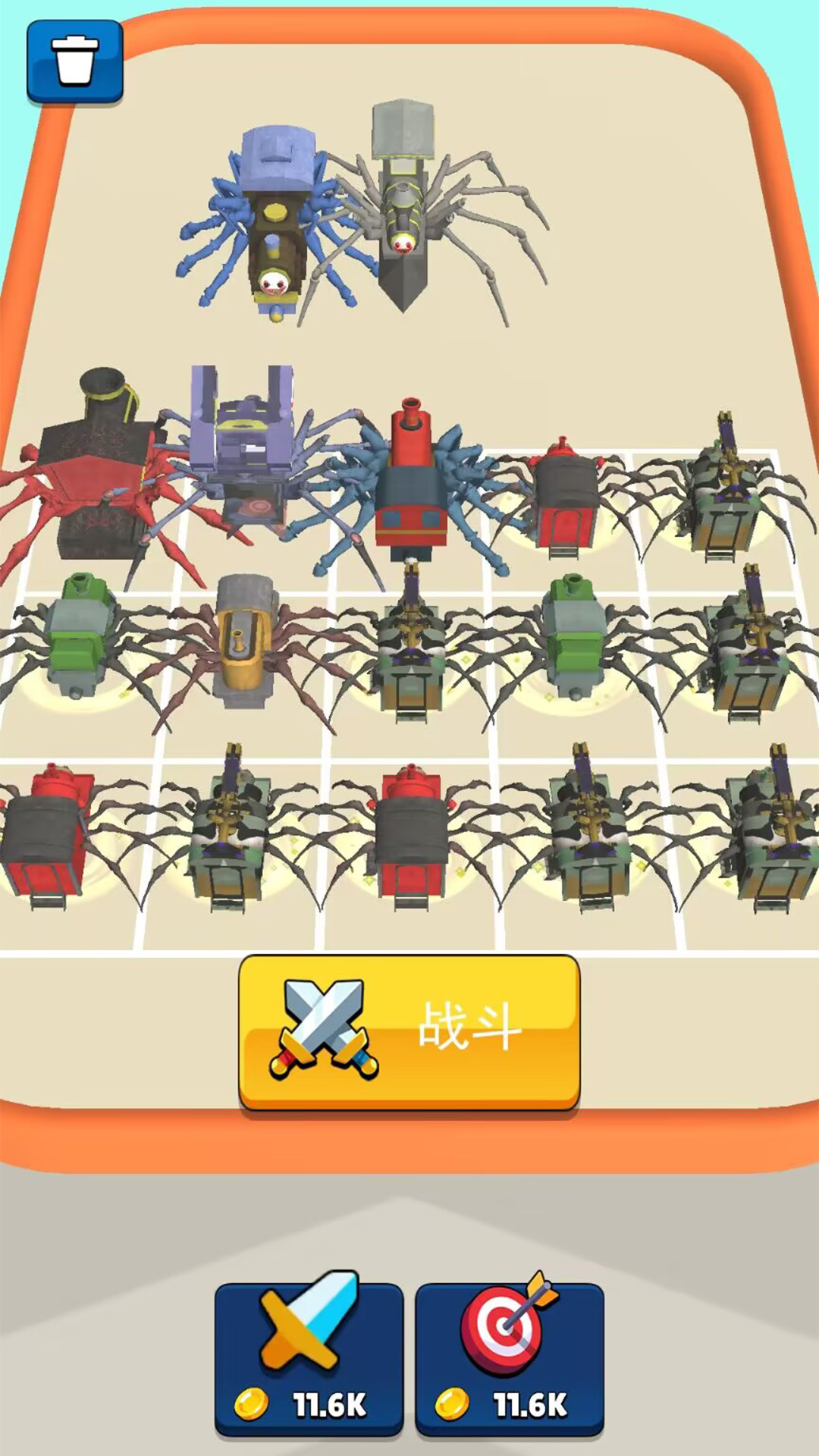游戏是一款融合了跑酷与合成战斗元素的休闲动作冒险游戏。玩家将操控蜘蛛小火车,突破敌人设下的重重障碍,最终抵达敌方巢穴展开激烈对决,击败对手并成为最强王牌小火车!