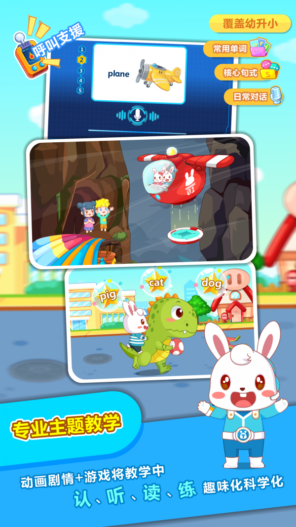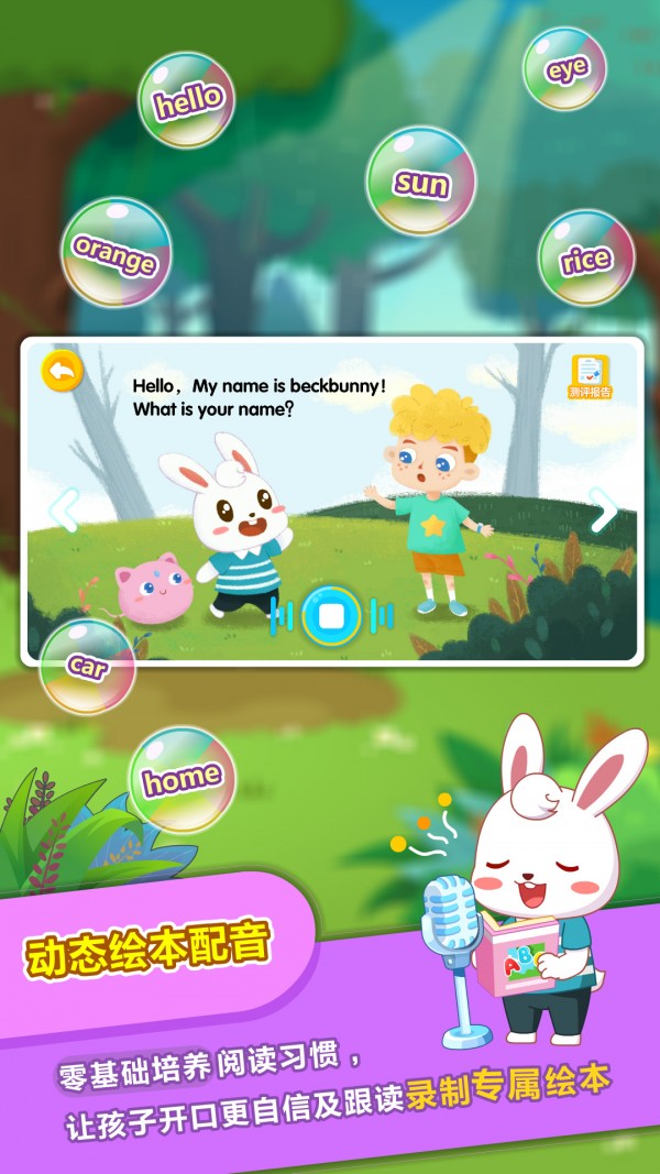 兔小贝儿童英语app充分考虑中国儿童的语言发展特点,精心设计适合低龄儿童的英语课程体系。软件打破传统填鸭式教学模式,遵循儿童认知规律,通过听、说、读、测四个维度的系统训练,将英语学习与趣味剧情完美结合,帮助孩子主动完成学习任务。