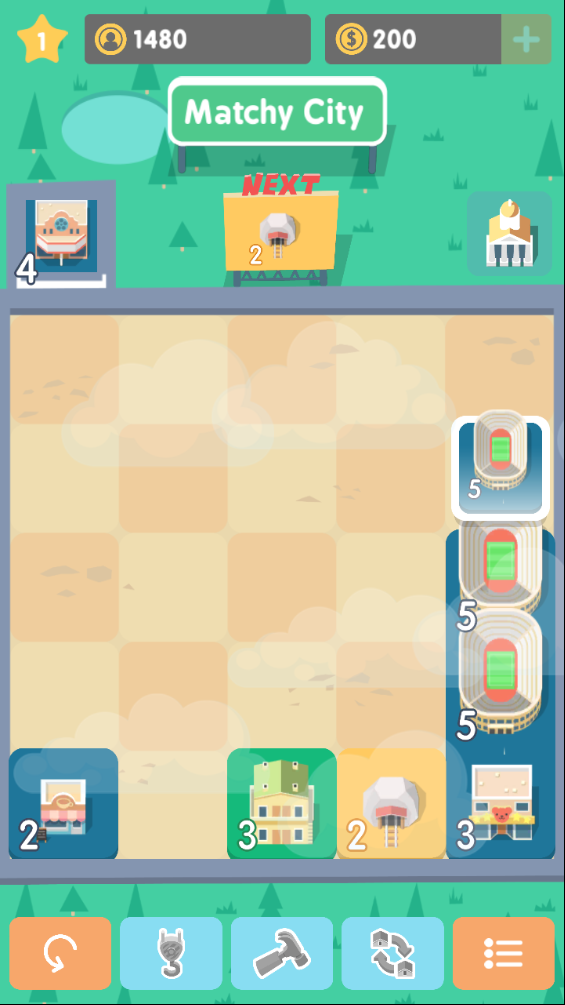 通过上下左右滑动来移动瓷砖,注意只能移动可活动的瓷砖。当三个相同等级的瓷砖在一条直线上时,滑动它们就能合并成更高级的建筑。随着合并次数的增加,建筑的价值也会不断提升。