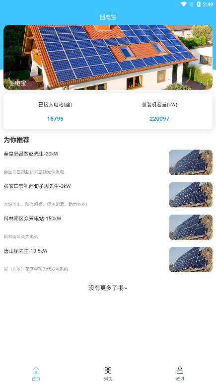 创电宝app是一款专业的光伏电站管理工具,致力于为用户提供高效便捷的新能源电站管理体验。通过该软件,用户可以轻松掌握电站运营状态,同时获取最新的行业资讯,实现智能化能源管理。
