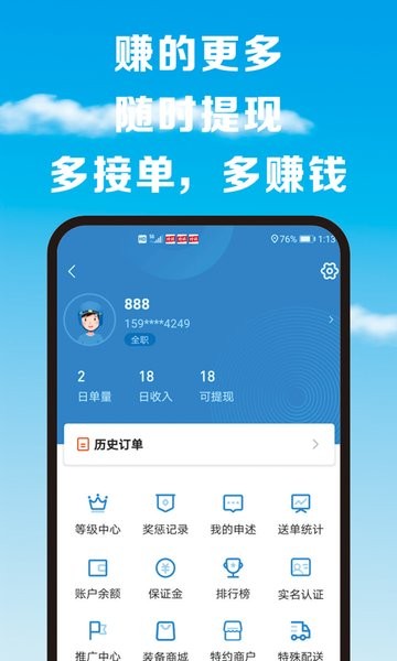 【即时结算】每单实时结算,收入透明,随时提现。