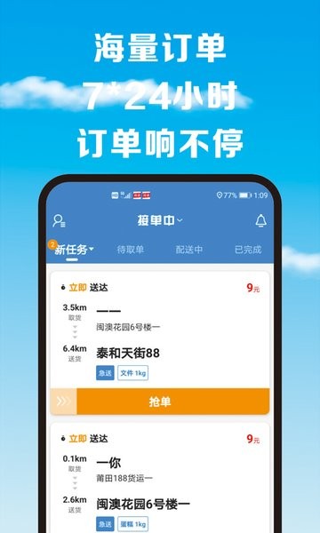 【海量订单】24小时不间断订单推送,满足各类配送需求。