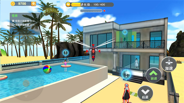 控制蚊子在房间内寻找合适的目标,悄悄降落在小姐姐裸露的皮肤上,找准时机开始吸血。在小姐姐察觉之前尽可能多地吸取血液,同时要随时准备逃离。注意躲避小姐姐的拍打和突然出现的杀虫剂喷雾,这些都可能让你瞬间毙命。
