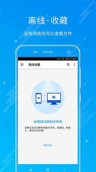 离线收藏文件夹:WiFi下自动同步感兴趣的文件夹,供离线访问,不耗流量,快捷省电