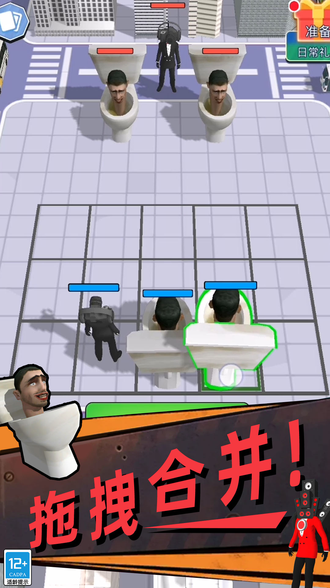 这是一款充满创意的2D合成战斗游戏,玩家将操控独特的马桶怪角色展开激烈对决。游戏采用简单易上手的合成机制,通过将相同等级的马桶怪进行合并,创造出更强大的战斗单位。