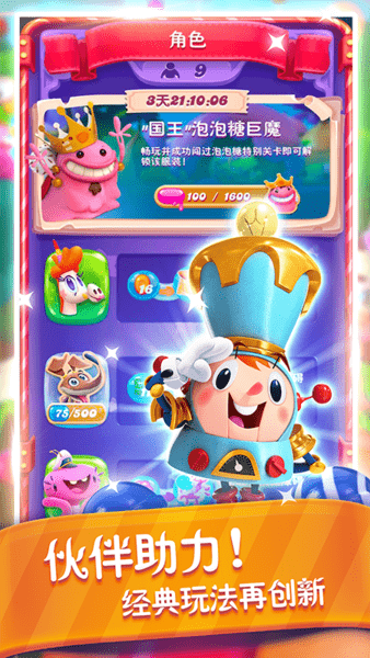 挑战特殊关卡,与狡猾的小熊软糖国王展开精彩对决;