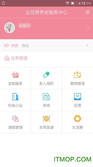云住养家属端-用于展示老人在养老机构的生活和服务情况,包括用药情况,生活状况,以及各项服务情况,方便家属了解老人情况以及和养老机构的及时沟通,提高工作效率和时效性。