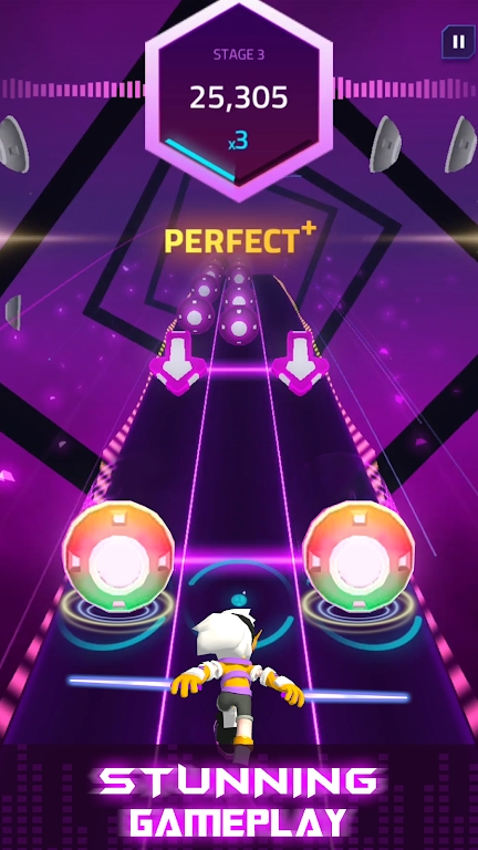 每完成一个关卡都能获得金币奖励,得分越高奖励越丰厚;游戏设有体力系统,帮助玩家合理安排游戏时间;丰富多样的关卡设计让游戏充满新鲜感,随着进度深入,音乐节奏会更加震撼,带来更刺激的游戏体验。