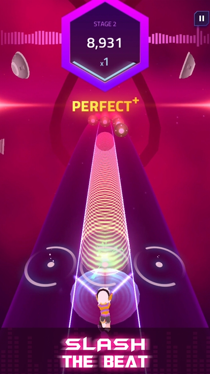 游戏打击感出色,每次成功击打方块都会有精准的震动反馈;关卡设计循序渐进,后期高难度曲目带来极致挑战;精美的界面设计会随音乐变换色彩,营造沉浸式的视听体验。