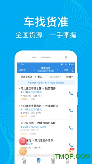 货源信息智能推送,随时随地免费接收;