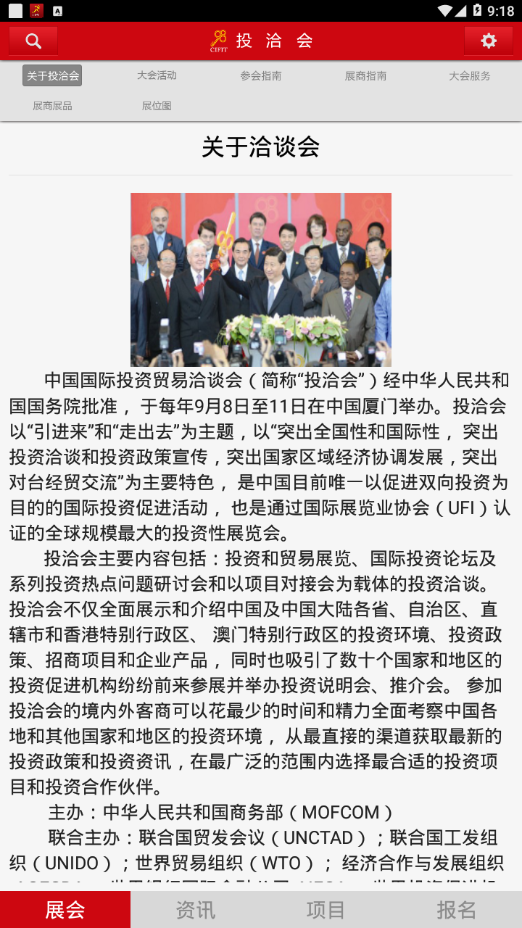 "投洽会"APP是中国国际投资贸易洽谈会、阿里巴巴集团、厦门国贸会展集团三家联合打造的国际投资促进服务平台的移动端入口。