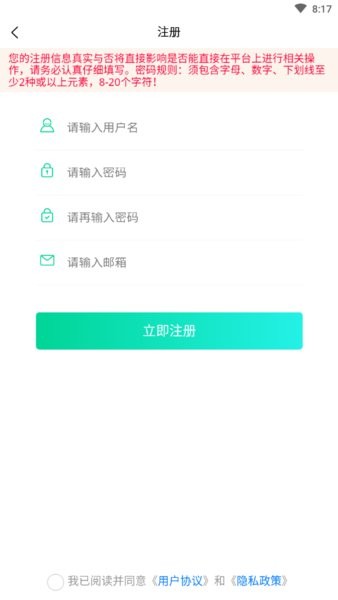 用户需通过APP完善个人信息,提交协议书及电子照片完成注册。