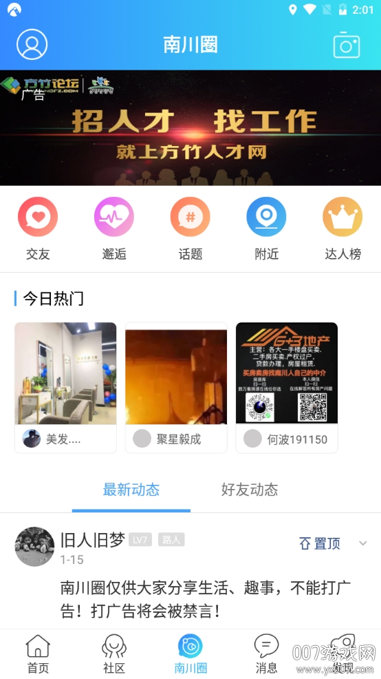 方竹论坛南川版是专为重庆南川区居民打造的综合性交流平台,涵盖本地生活服务、信息共享和社交互动功能。这里不仅提供招聘、房产交易等实用资讯,还整合了拼车服务、二手交易市场及便民电话查询等特色功能,全方位满足用户的线上需求。