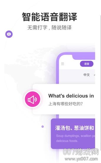 即时翻译:实时语音输入即时翻译,响应速度快;