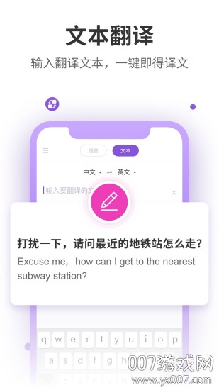 文本翻译:支持手动输入文本进行翻译;