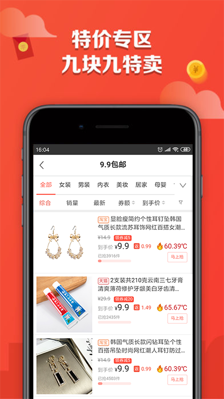 [9.9包邮]商品券后价低至九块九,是淘粉群体的不二选择;